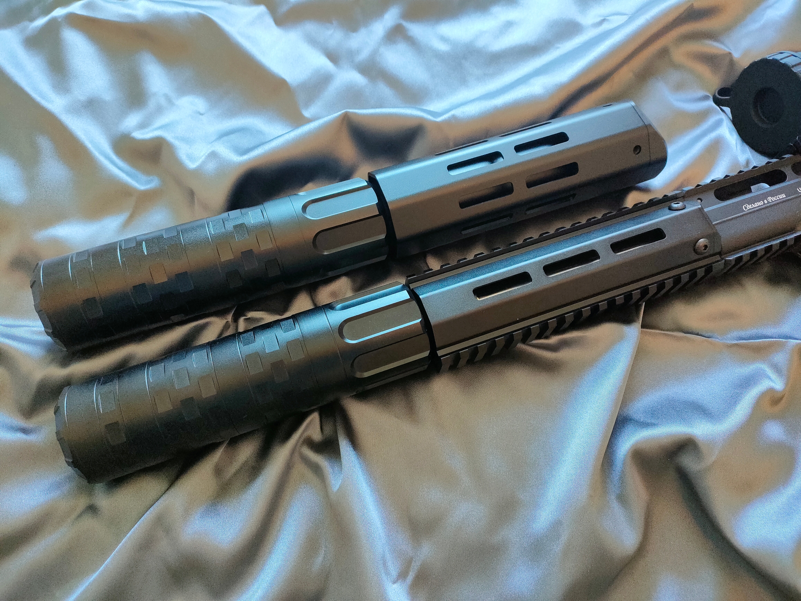 Для цевья-квадрейл с вивером подходит только "универсальный" модератор БЕЗ наствольного кожуха. Другой модератор не влезет в это цевьё.